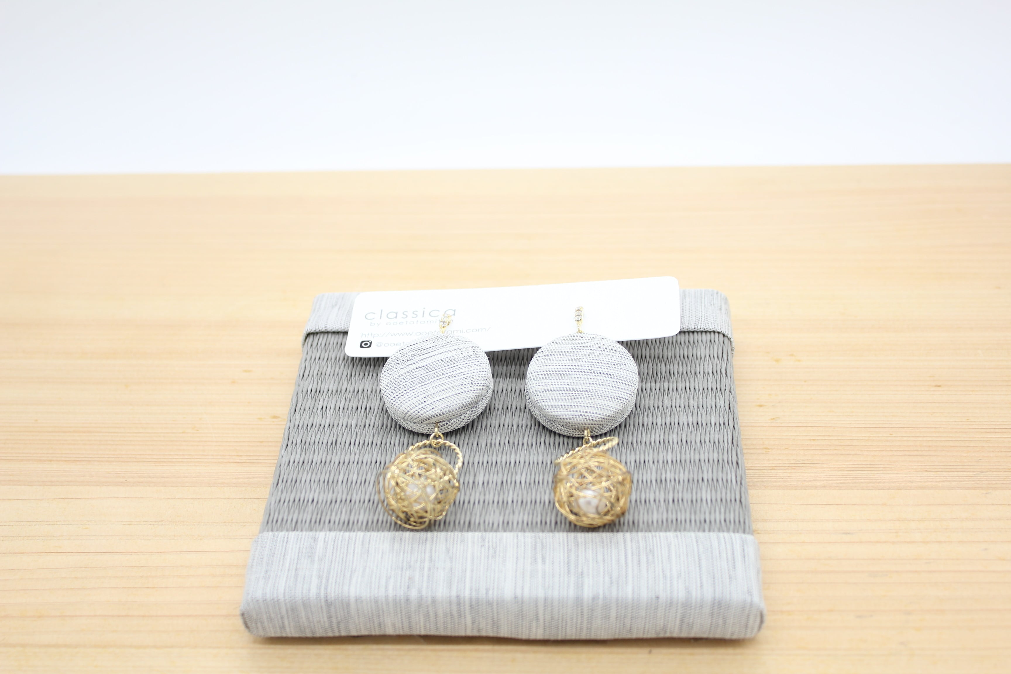 落ち着いたグレーの畳縁をシックなパーツで仕上げています。